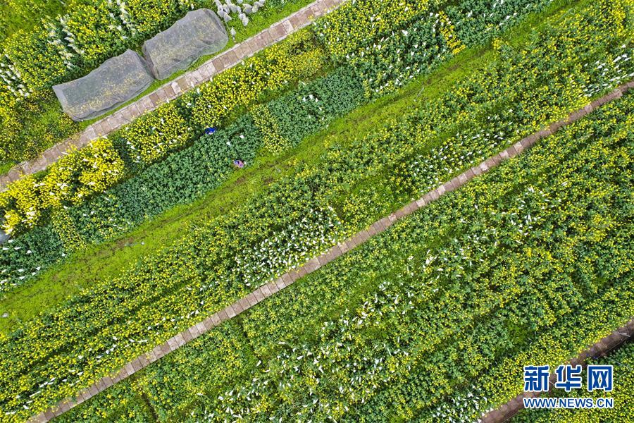 3月5日,工人在重慶市油菜工程技術研究中心油菜試驗田內作業(無人機照片)。 時下正值油菜花期,重慶市油菜工程技術研究中心的農學專家帶領學生和技術工人搶抓農時,推進油菜科研和育種工作。 新華社記者王全超攝
