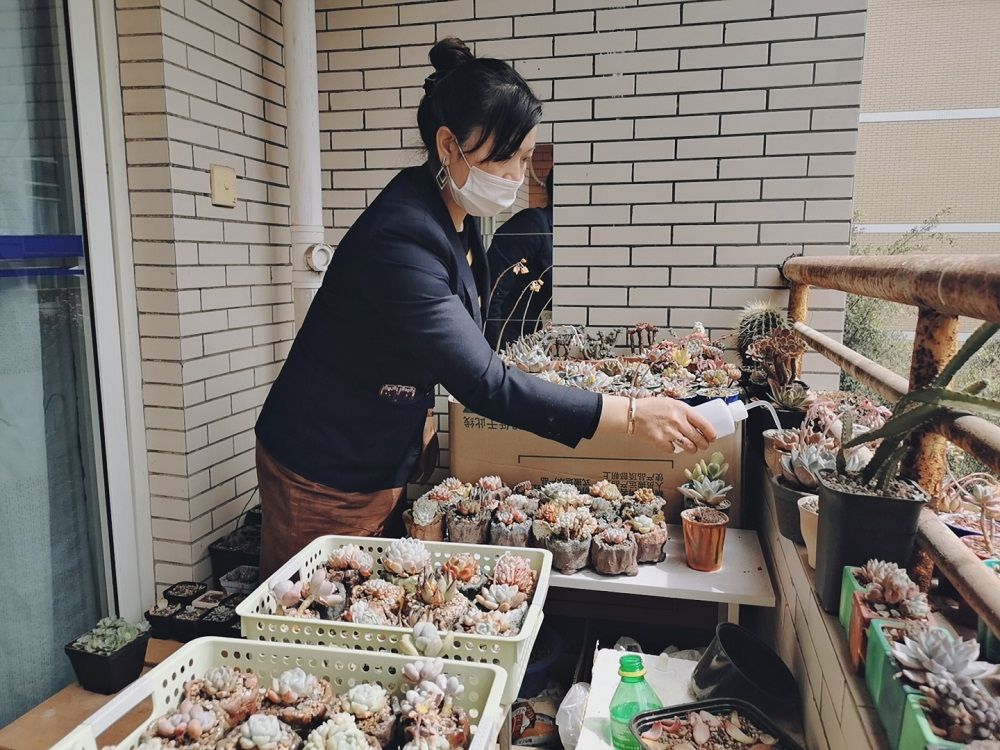 圖為宿管阿姨給同學(xué)養(yǎng)的多肉植物澆水。(西南大學(xué)供圖)