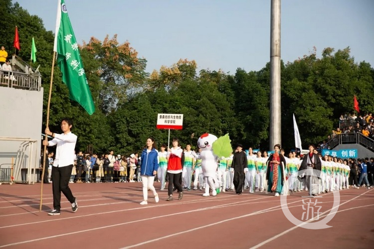 10月22日上午,天空晴朗,西南大學(xué)第十五屆田徑運(yùn)動(dòng)會(huì)在學(xué)校第二運(yùn)動(dòng)場(chǎng)拉開帷幕。開幕式上,最令人眼花繚亂的就是每個(gè)學(xué)院的入場(chǎng)式了:絲織漢服走秀、可愛卡通加菲貓、帶著迷你“地球”……入場(chǎng)式已成為各學(xué)院學(xué)科專業(yè)的“走秀場(chǎng)”。