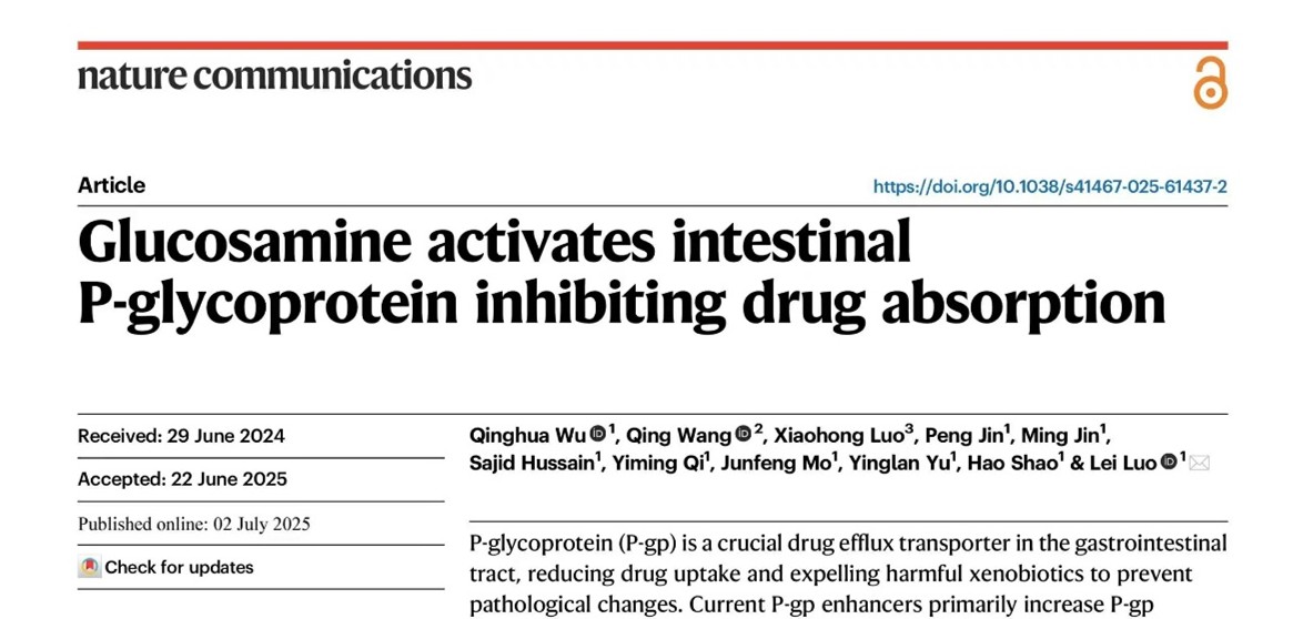 近日,藥學院 中醫藥學院羅雷教授團隊在《自然》(Nature)雜志子刊《自然通訊》(Nature Communications)上在線發表了題為《氨基葡萄糖激活腸道P-糖蛋白抑制藥物吸收》(Glucosamine activates intestinal P-glycoprotein inhibiting drug absorption)的研究論文,首次揭示了殼寡糖的聚合度對其促吸收和抑制吸收機制的決定性作用。