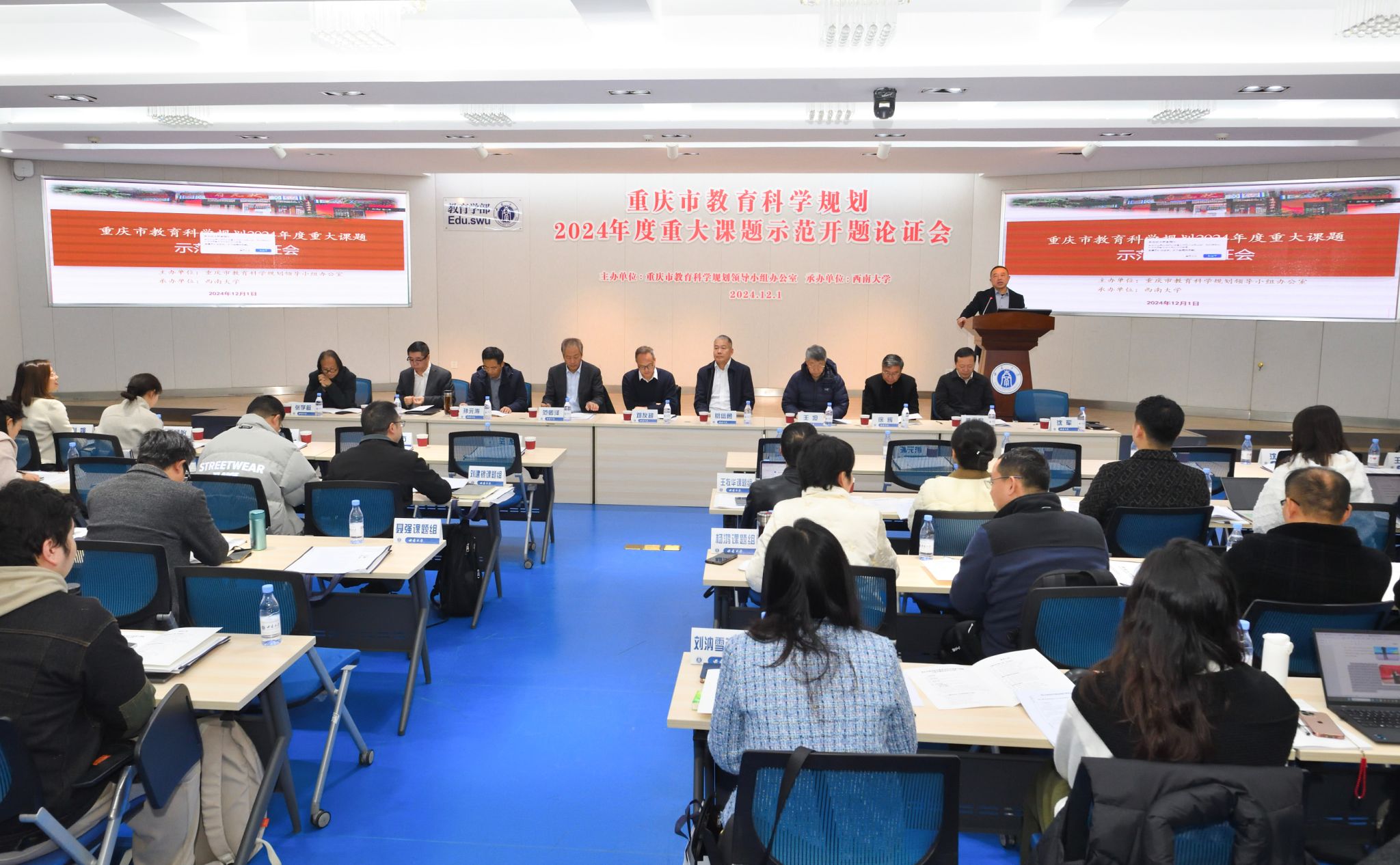 為深入貫徹全國教育大會及重慶教育大會精神,落實教育強國戰略,加快重慶教育強市建設,充分發揮教育科研推動教育改革發展的支撐、驅動、引領作用,強化全市教育科學規劃課題質量管理,2024年12月1日上午,由重慶市教育科學規劃領導小組辦公室主辦、我校承辦的重慶市教育科學規劃2024年度重大課題示范開題論證會于田家炳教育書院813報告廳舉行。