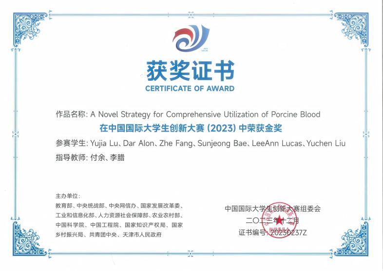 2023年12月,學院2020屆畢業(yè)生校友在中國國際大學生創(chuàng)新大賽(2023)中榮獲國際賽道金獎。