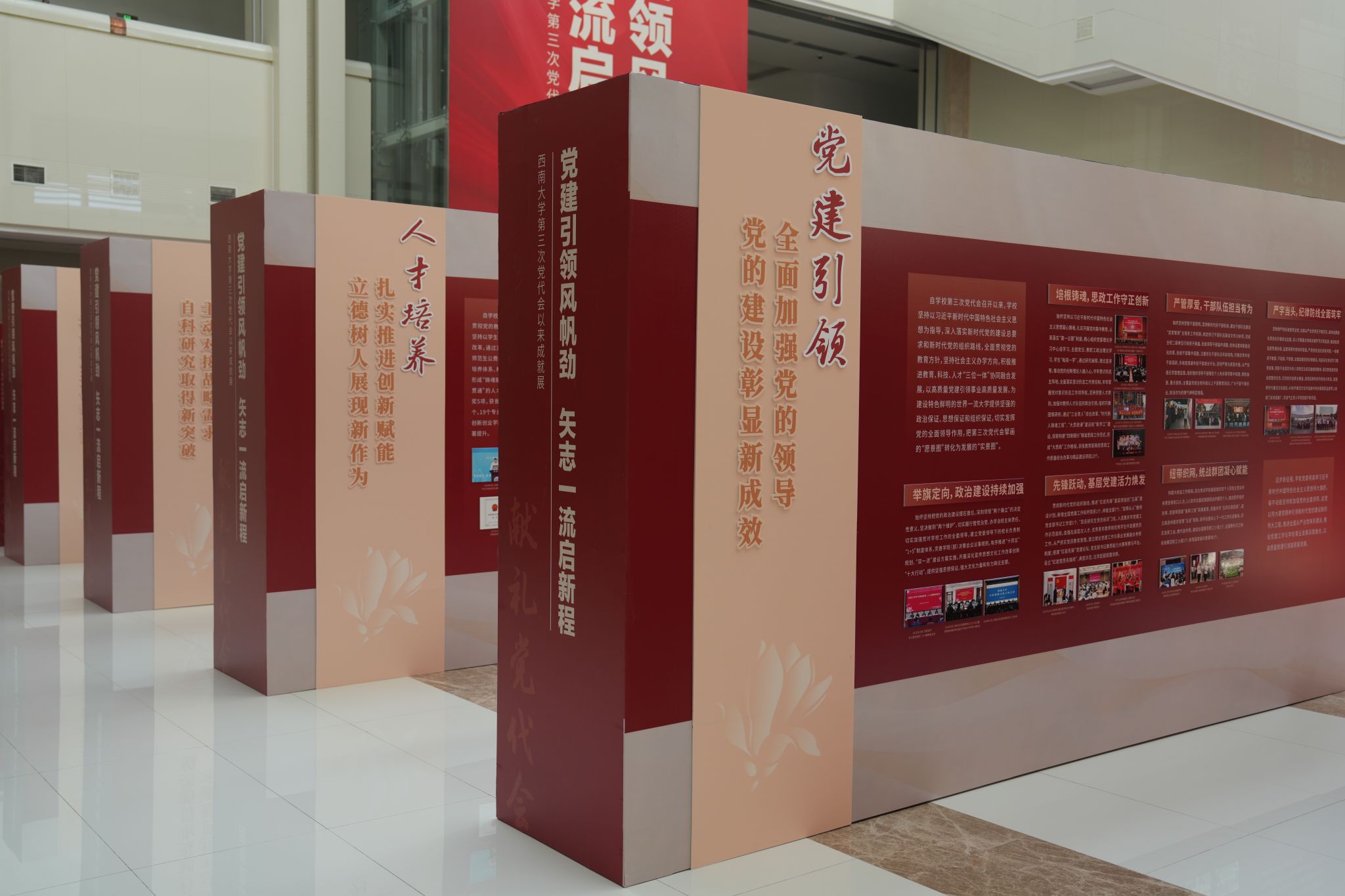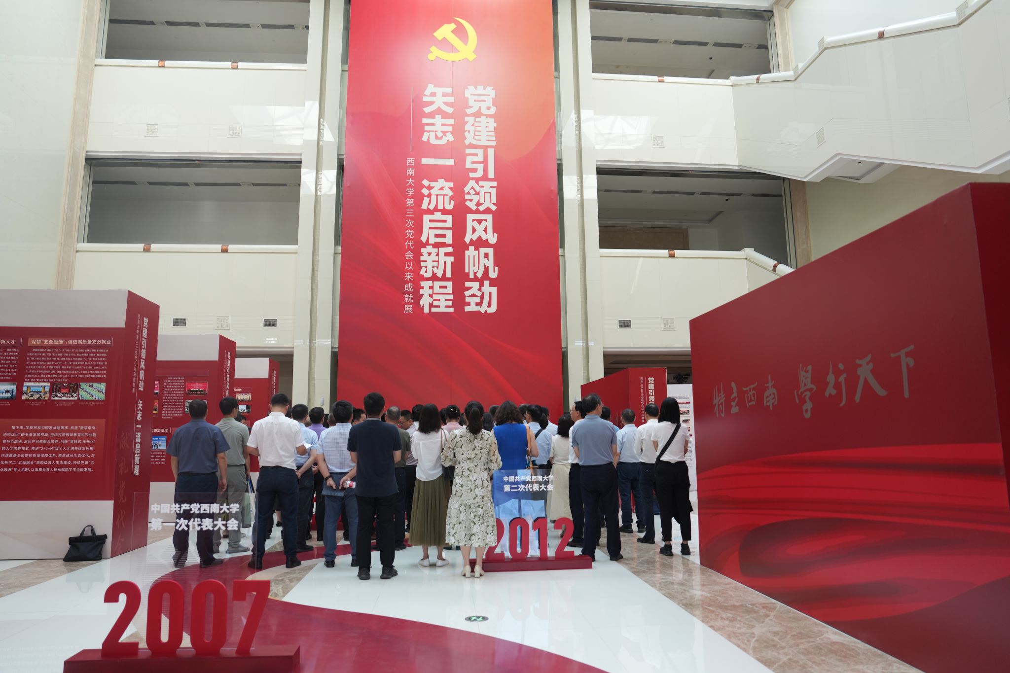 為總結回顧學校第三次黨代會以來建設歷程、發展成就,為學校第四次黨代會召開營造濃厚氛圍,學校策劃舉辦“黨建引領風帆勁 矢志一流啟新程”西南大學第三次黨代會以來成就展。6月13日下午,展覽開展儀式在學校博物館陽光展廳舉行,校領導、各二級黨組織主要負責人、部分黨員代表和學校第四次黨代會代表參加,黨委副書記黃杰主持儀式。