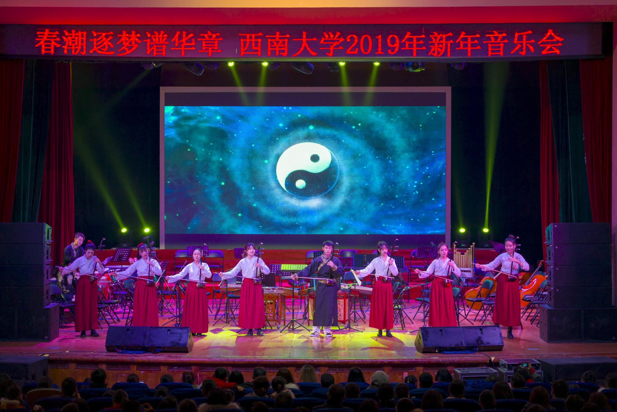 民樂是我國傳統音樂文化的瑰寶。西南大學民族樂團組建于2007年,現有樂團成員40余人,由音樂學院師生組成。樂團聘請了國家一級指揮陳繼生、王石民老師為樂團指揮兼藝術指導,該院馬剛老師為樂團常任指揮和樂團團長。自組建以來,樂團已承擔校內外各類演出100余場,還作為教育部“高雅藝術進校園”指定的團體之一,在重慶和西南地區大中小學巡演,展示了西南大學民族音樂文化的傳承與創新成效,深受觀眾好評。