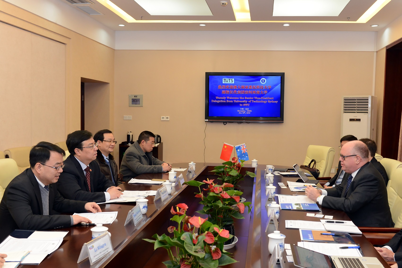來訪期間,客人還拜訪了西南大學副校長靳玉樂,雙方就已有的中外合作辦學項目和機構的運行情況進行了溝通交流,進一步明確了以即將簽署成立的“西南大學墨爾本研究生院”為平臺的合作意向,共同致力于在大數據分析、多媒體和新媒體分析、人工智能、數據科學等領域攜手,聯合培養具有國際化視野的博士高端人才。