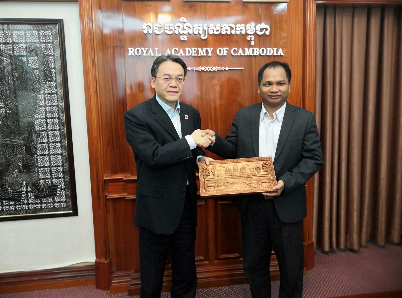 代表團還專程訪問了柬埔寨皇家科學院和教育部。皇家科學院作為柬政府的重要咨詢研究機構,隸屬于柬埔寨內閣事務部,下設6個研究所,主要培養碩士、博士研究生。經過商談,雙方對派遣柬方官員和學生來華進行短期漢語研修,加強在農業、動物、植物、家蠶等領域的科研合作,以及探索研究生聯合培養、共建柬埔寨國家公園等事宜,達成了諸多共識,并探討了在柬埔寨駐重慶總領事館的支持下,共建柬埔寨研究中心的可行性。代表團拜訪了柬埔寨教育部負責教育審計的官員。在聽取了學校與泰國教育部高教委以及越南教育管理學院合作范例的情況介紹后,柬方官員表達了對促成雙方合作的信心,并就官員短期培訓項目和境外合作辦學提出中肯建議。