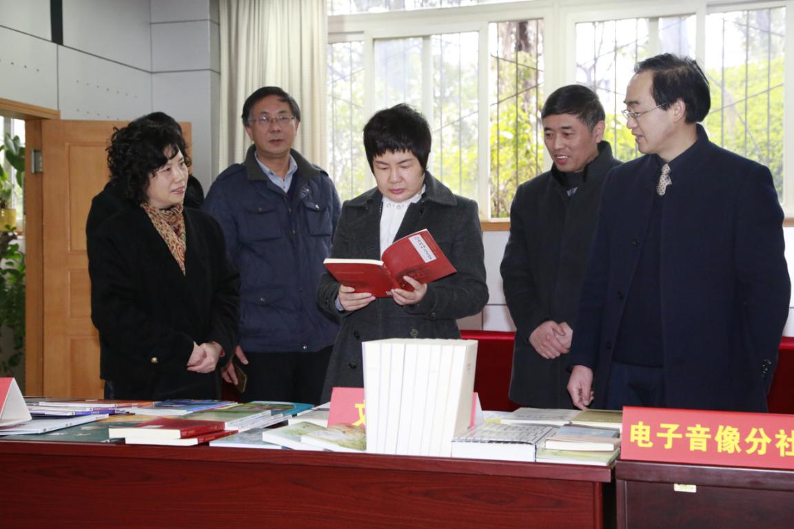 吳玉榮副部長首先參觀了出版社2018年度十佳圖書評選展覽,她一邊翻閱圖書,一邊詳細地詢問出版社的基本情況。