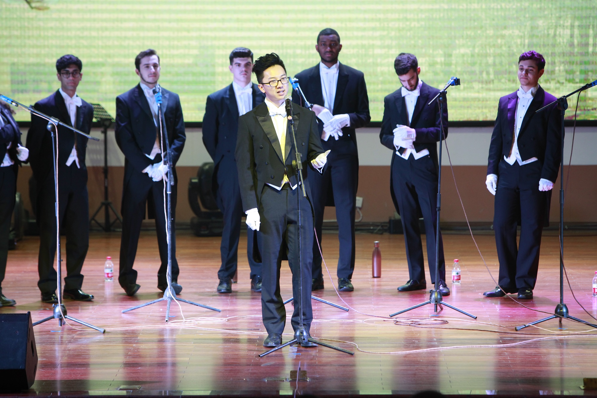 一首《Aj lucka lucka》拉開了演出的序幕,配合著響指和有層次嗓音,兩者高度契合,活潑輕盈。空靈的男聲回蕩,大家完美地配合著演唱了一首《Anything Goes》,讓場下的觀眾沉浸在音樂的世界里。歌曲《Nature Boy》仿佛把觀眾帶到了上個世紀的美國,優雅又歡快的爵士樂中,表演者用嗓子發出的薩克斯音婉轉輕快。學校音樂學院阿卡貝拉組合為大家帶來了《I need you love》和《情非得已》,表演者用真摯的情感唱出純真的情感,配合著他們靈動的表情,臺下的觀眾感受到了春天般的喜悅和活力。