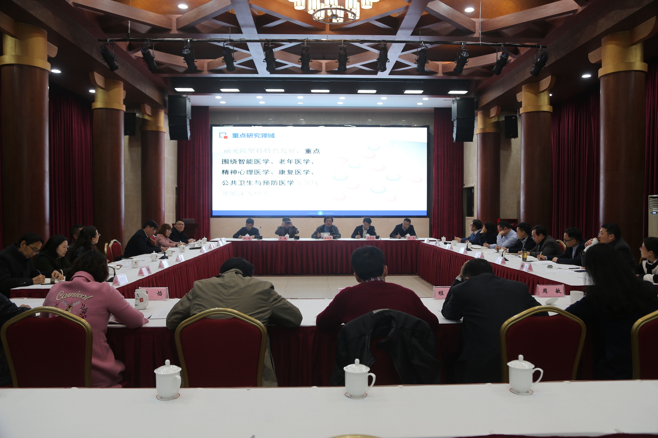 會(huì)上,崔校長(zhǎng)介紹了醫(yī)學(xué)研究院整體建設(shè)初步方案,從目標(biāo)定位、發(fā)展思路、研究領(lǐng)域、組織架構(gòu)、隊(duì)伍建設(shè)、人才培養(yǎng)、保障措施等方面向參會(huì)人員介紹了籌建規(guī)劃。三家附屬醫(yī)院即西南大學(xué)附屬醫(yī)院、西南大學(xué)附屬心理醫(yī)院、西南大學(xué)附屬公共衛(wèi)生醫(yī)院,分別介紹了現(xiàn)有平臺(tái)及團(tuán)隊(duì)建設(shè)情況,從建設(shè)背景、研究方向、發(fā)展目標(biāo)、建設(shè)規(guī)劃等方面提出各研究中心建設(shè)思路,并對(duì)下一步深入合作提出工作建議。學(xué)校相關(guān)領(lǐng)域?qū)<医榻B了各自研究領(lǐng)域和關(guān)注熱點(diǎn),并與相關(guān)職能部門(mén)負(fù)責(zé)人一道對(duì)醫(yī)學(xué)研究院研究中心的建設(shè)和發(fā)展提出了意見(jiàn)建議。