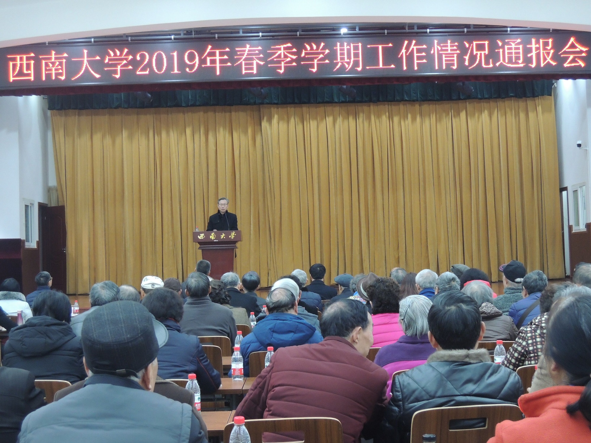 李旭鋒書記明確了2019年學(xué)校工作的總體要求:以習(xí)近平新時代中國特色社會主義思想為指導(dǎo),深入貫徹黨的十九大精神,全面落實全國教育大會精神、第26次全國高校黨的建設(shè)工作會議精神,堅持黨對學(xué)校工作的全面領(lǐng)導(dǎo),堅持黨委領(lǐng)導(dǎo)下的校長負責(zé)制,堅持以狠抓落實為總抓手,落實基層黨建工作基本要求,落實內(nèi)涵式發(fā)展重點舉措,落實立德樹人根本任務(wù),推出一批“亮點項目”和“精品工程”,著力書寫學(xué)校改革發(fā)展“奮進之筆”,向全校師生交出一份“得意之作”,以優(yōu)異成績慶祝中華人民共和國成立70周年。