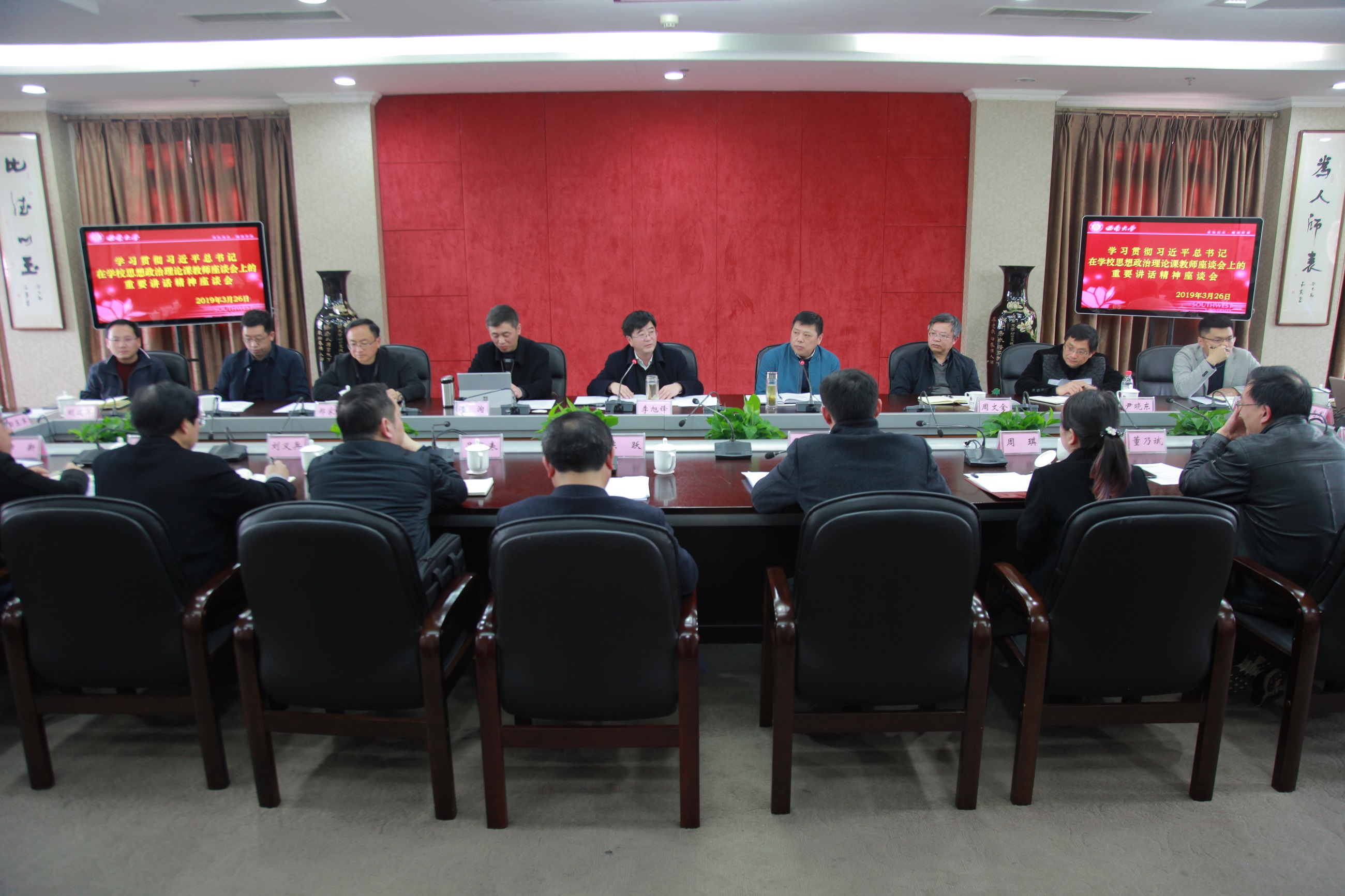 3月26日,學校召開學習貫徹習近平總書記在學校思想政治理論課教師座談會上的重要講話精神的學習座談會,旨在學習領會貫徹落實習總書記重要講話精神,進一步辦好思想政治理論課,落實立德樹人根本任務。學校黨委書記李旭鋒,校長、黨委副書記張衛國,黨委副書記潘洵及思政課建設領導小組成員單位負責人、思政課教學指導委員會代表、思政課專兼職教師代表、學生代表等參加會議。