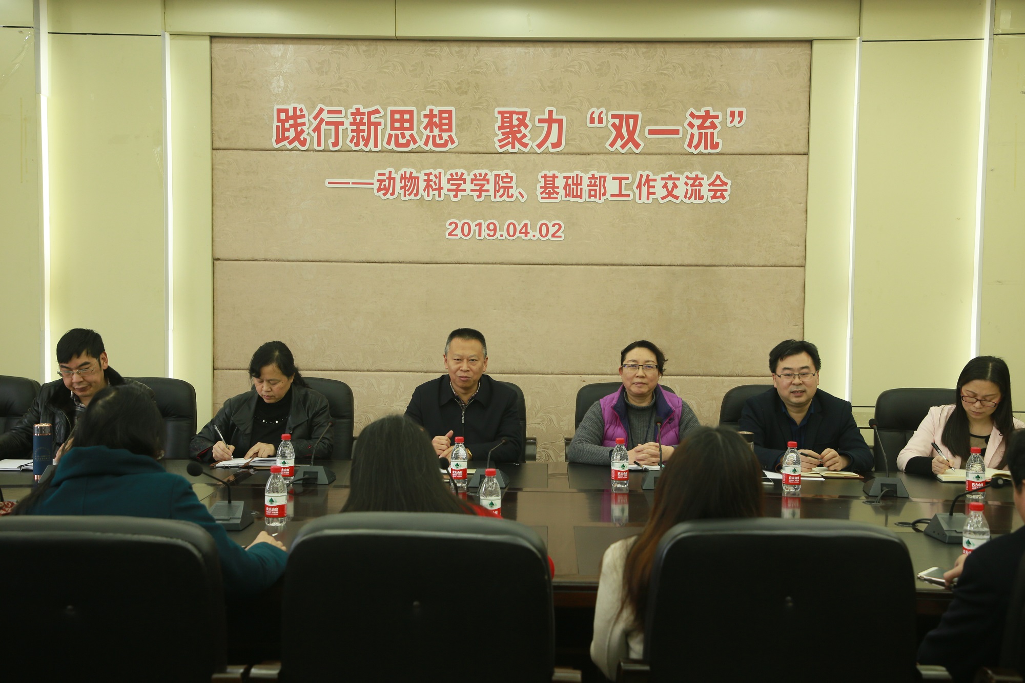 朱漢春書(shū)記就抓黨建、帶班子、促改革、強(qiáng)服務(wù)、推進(jìn)“雙一流”建設(shè)提供堅(jiān)強(qiáng)保障方面作了發(fā)言。朱書(shū)記指出,要引導(dǎo)廣大青年堅(jiān)定聽(tīng)黨話跟黨走,進(jìn)一步強(qiáng)化“全黨抓思想政治引領(lǐng)”的工作理念,用習(xí)近平總書(shū)記新時(shí)代中國(guó)特色社會(huì)主義思想武裝頭腦,指導(dǎo)實(shí)踐,推動(dòng)工作。基礎(chǔ)部黨總支書(shū)記童學(xué)蘭指出,要以思想政治引領(lǐng)為首要任務(wù),把思想政治引領(lǐng)貫穿黨的各項(xiàng)工作全過(guò)程,不斷增進(jìn)對(duì)黨的信念、信心,高揚(yáng)“不忘初心緊跟黨走”的主旋律。動(dòng)物科學(xué)學(xué)院劉娟院長(zhǎng)、基礎(chǔ)部魏東主任分別介紹了本單位基本情況,與會(huì)人員圍繞人才培養(yǎng)、課程思政建設(shè)實(shí)施、學(xué)科隊(duì)伍建設(shè)、科學(xué)研究等進(jìn)行了深入交流,達(dá)成共識(shí)。
