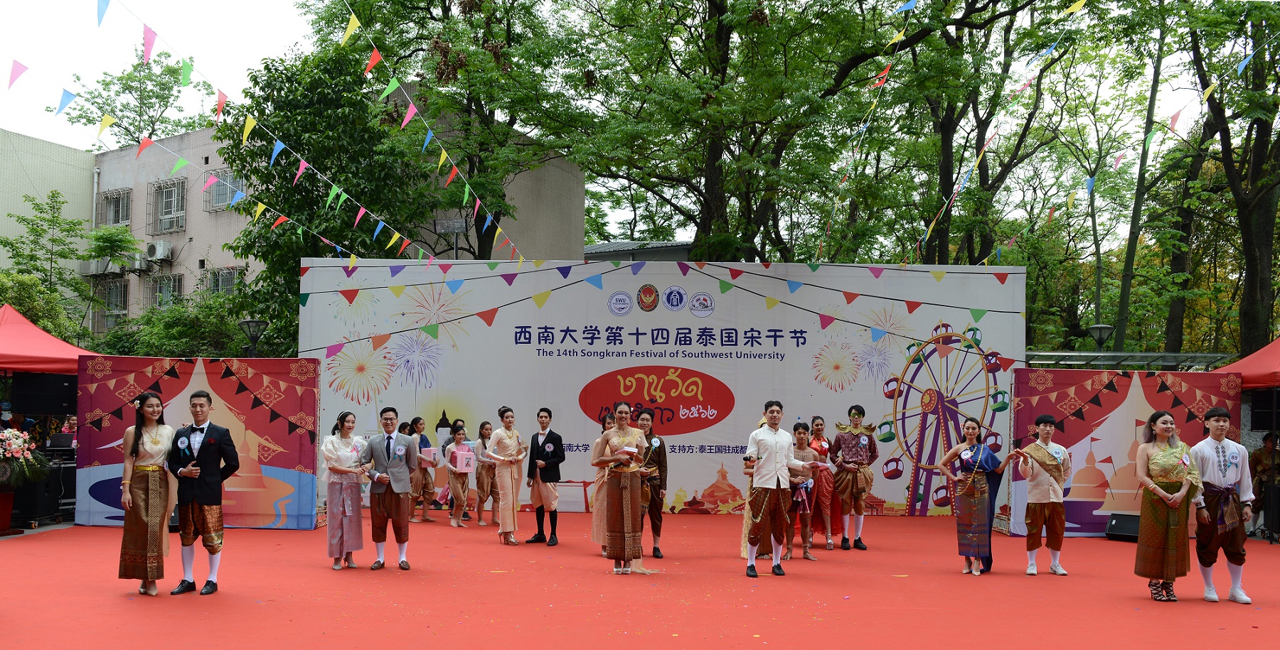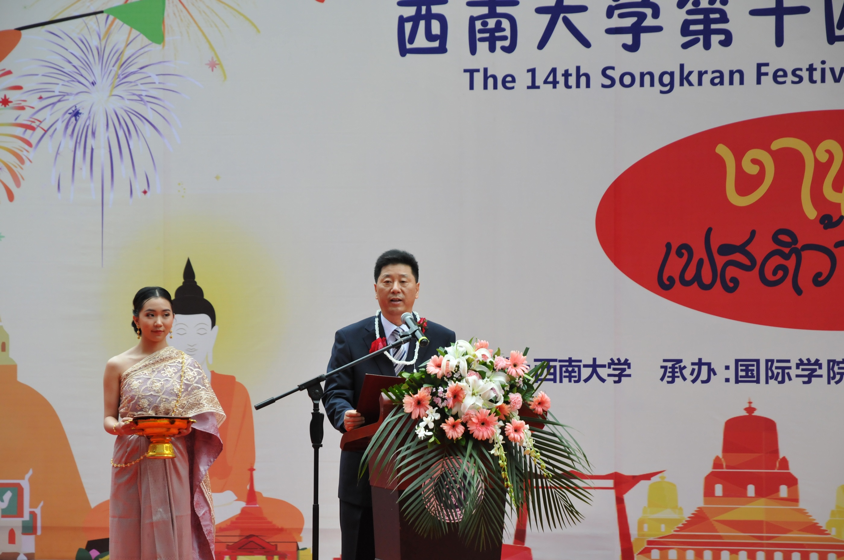 4月10日下午,學校第十四屆泰國宋干節舉行。泰王國駐成都總領事館總領事吳威德、重慶市公安局出入境管理局和北碚公安分局的有關領導、學校副校長靳玉樂,以及學校相關職能部門負責人應邀出席本次活動。中外師生500余人共同歡度泰歷新年。