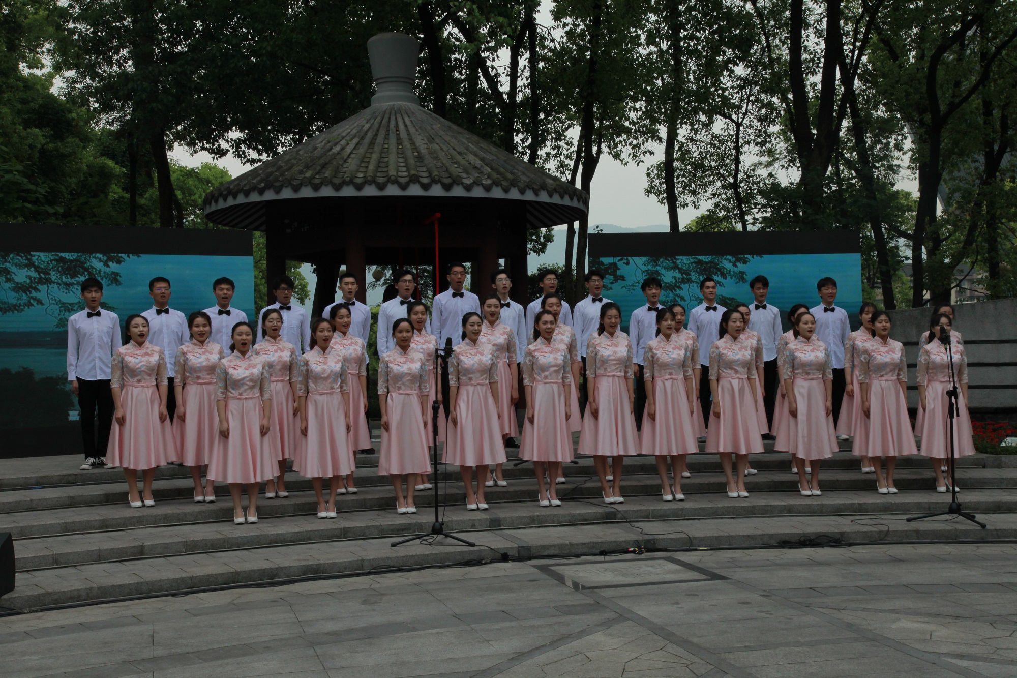 《西南大學精神禮贊》情景詩詞誦讀頌出西南大學的百年薪火相傳、四海桃李芬芳的歷史,這首組詩由西南大學鄭勁松老師所作。領誦者沿著紀念園地上鐫刻的歷史沿革年代一步步走來,吟誦到:“這是東方時空的子午線”“這是西南大學人身上的歷史文化血管”。合誦者齊聲朗誦:“這是西南大學精神的憩園,是一所百年學府的思想文化之眼/含弘光大 ,繼往開來,特立西南 ,學行天下”。朗誦充滿了對母校的拳拳之心,表露了莘莘學子愛校榮校的熱烈情懷。