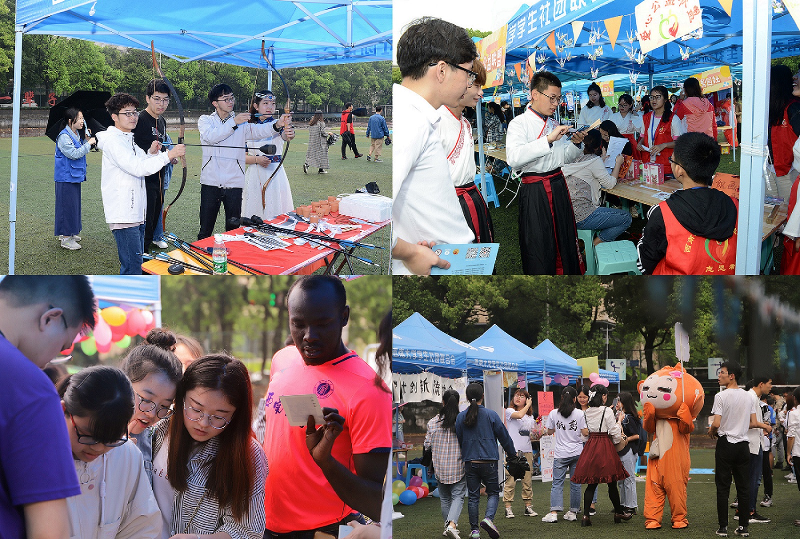80余個(gè)學(xué)生社團(tuán)“八仙過海、各顯神通”,特色展品、互動(dòng)游戲、才藝表演讓人目不暇接,或真摯樸素、或慷慨激昂。書法協(xié)會(huì)力透紙背、筆走龍蛇;魔方協(xié)會(huì)上下翻飛、眼花繚亂;棋藝協(xié)會(huì)飛車走馬、棋逢對(duì)手;射藝協(xié)會(huì)挽弓搭箭、百步穿楊。漢服、茶藝等中華優(yōu)秀傳統(tǒng)文化表演引人駐足觀望,輪滑、滑板等極限運(yùn)動(dòng)展示讓人瞠目結(jié)舌,更有主舞臺(tái)的樂隊(duì)演出將現(xiàn)場(chǎng)活動(dòng)氣氛推向高潮,傾盆大雨和同學(xué)們的熱情碰撞出了浪漫的味道。眾多校友、考生及其家長(zhǎng)也來到活動(dòng)現(xiàn)場(chǎng),校友們重溫社團(tuán)活動(dòng)、喚醒了青春回憶,考生們憧憬大學(xué)生活、明確了升學(xué)目標(biāo)。