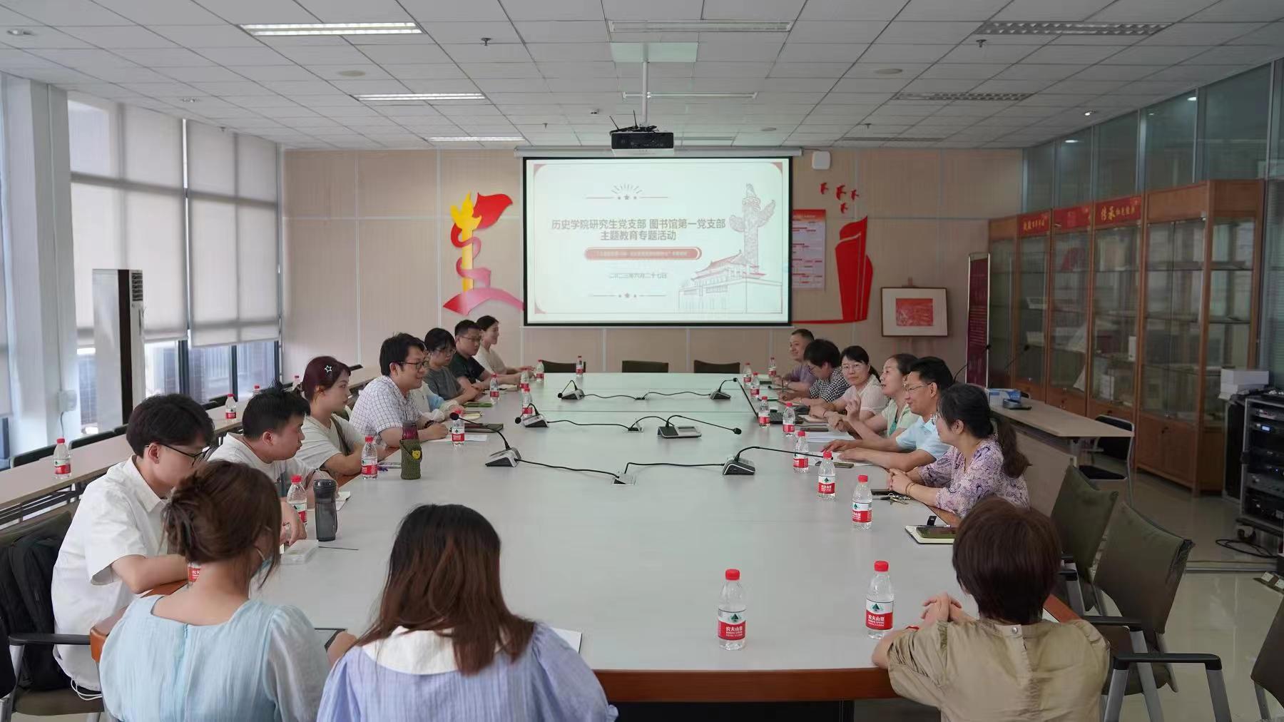 為扎實(shí)推進(jìn)學(xué)習(xí)貫徹習(xí)近平新時(shí)代中國特色社會(huì)主義思想主題教育,進(jìn)一步發(fā)揮黨建引領(lǐng)作用,全面促進(jìn)各項(xiàng)工作發(fā)展提升,6月27日下午,圖書館第一黨支部與歷史文化學(xué)院世界史研究生黨支部、中國古代史研究生黨支部、中國近現(xiàn)代史研究生黨支部聯(lián)合開展了學(xué)習(xí)貫徹習(xí)近平新時(shí)代中國特色社會(huì)主義思想主題教育調(diào)研交流會(huì)。圖書館黨委書記梁大明、副館長闞軍,歷史文化學(xué)院副院長、世界史研究生黨支部書記李晶,以及各支部黨員同志共計(jì)20余人參加了調(diào)研交流會(huì)。闞軍副館長主持會(huì)議。