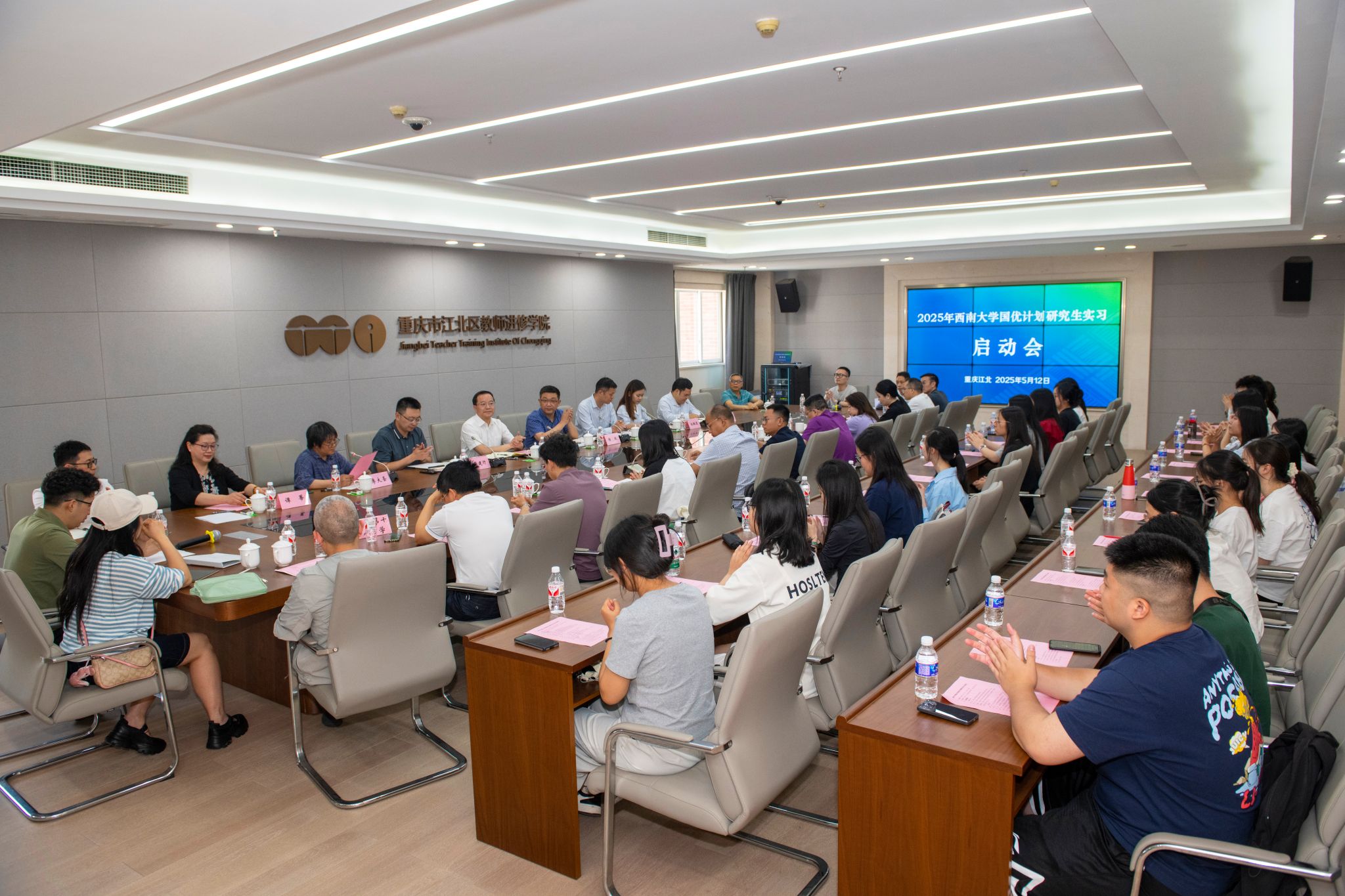 5月12日,2025年西南大學(xué)“國(guó)優(yōu)計(jì)劃”研究生實(shí)習(xí)啟動(dòng)會(huì)在重慶市江北區(qū)教師進(jìn)修學(xué)院召開(kāi)。重慶市江北區(qū)教育委員會(huì)、重慶市江北區(qū)教師進(jìn)修學(xué)院、學(xué)校教師教育學(xué)院相關(guān)負(fù)責(zé)人,實(shí)習(xí)學(xué)校代表及23名“國(guó)優(yōu)計(jì)劃”研究生參加。