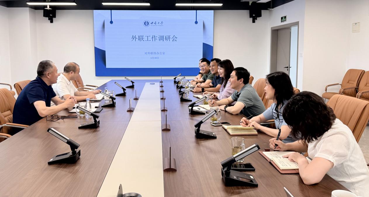 5月30日,副校長葛信勇帶隊赴對外聯絡辦公室推進校慶籌備工作。黨政辦公室副主任、督查辦公室主任曾慶洪陪同。對外聯絡辦公室科級以上干部參加座談。