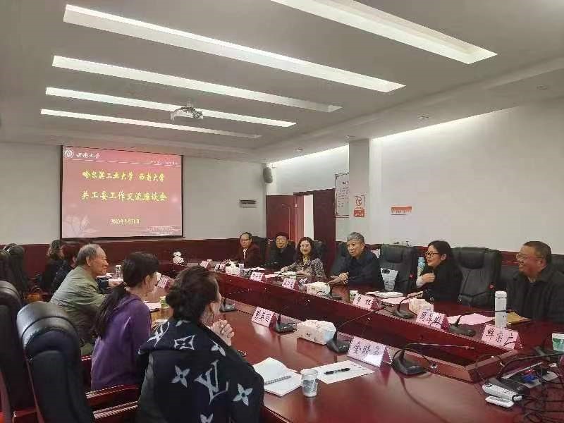 3月31日,哈爾濱工業大學關工委副主任董書民一行6人來校交流,學校關工委常務副主任宋乃慶、關工委秘書處、辦公室、離退休黨委相關負責人參加了交流座談。