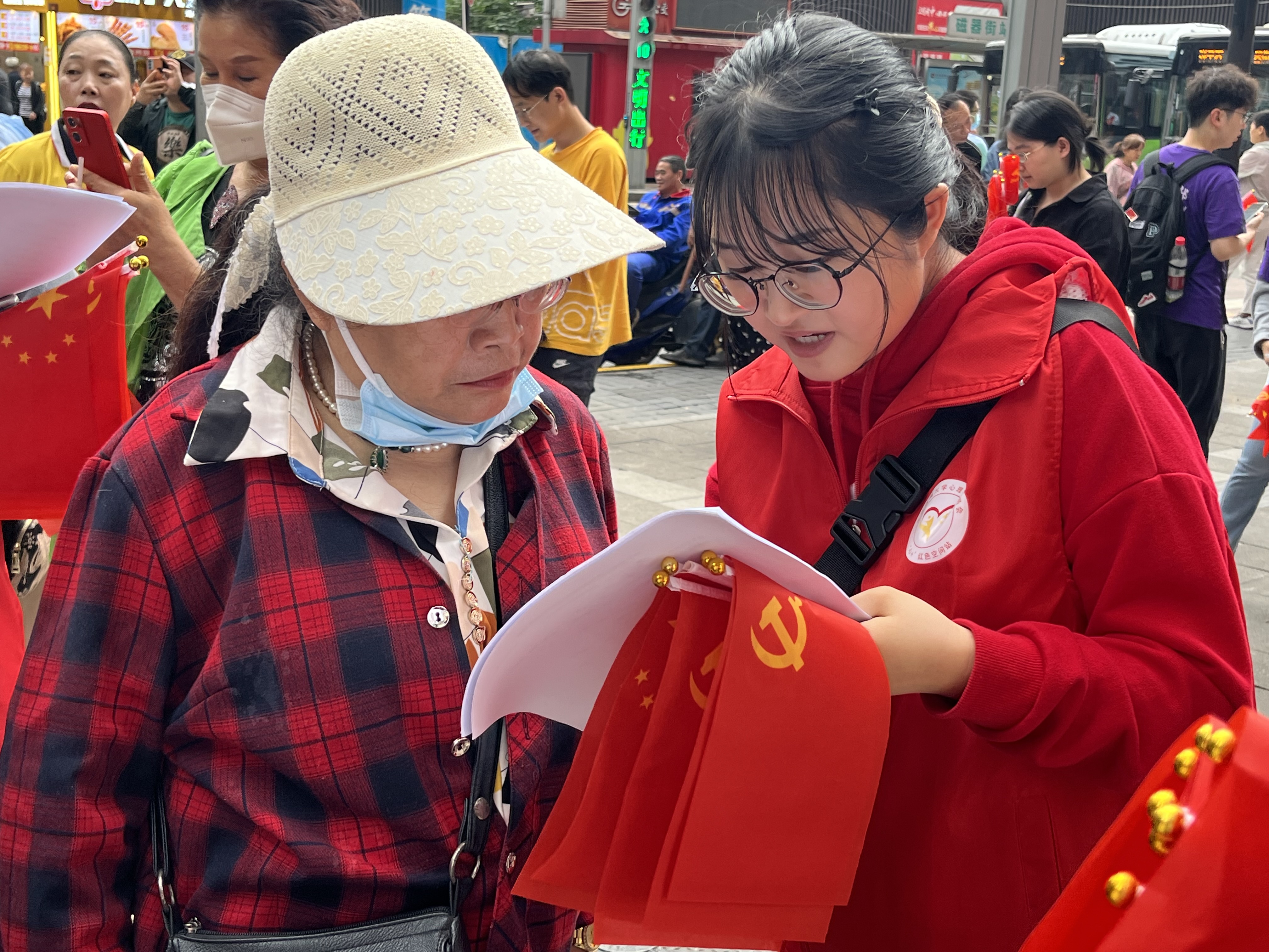 一早抵達舊址,學生們便立即投入到人群中開展調研。通過訪談和問卷結合的形式調研群眾200余名,聆聽受難者家屬親歷悲慘歷史發出的沉痛嘆息,感受普通民眾對戰爭發起者行非人之徑的強烈譴責,大家看到了華夏兒女銘記恥辱繼續向前的滿腔熱血與豪情,也看到了老少子民對如今強大祖國的自信與底氣。