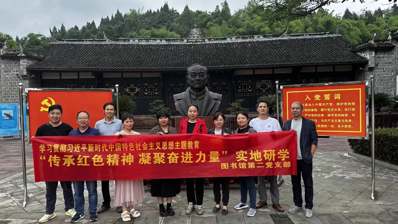 為扎實開展學習貫徹習近平新時代中國特色社會主義思想主題教育,圖書館黨委在理論學習、專題宣講的基礎上,繼續豐富學習形式,組織黨支部開展紅色研學活動。6月16日,圖書館所轄黨支部分別赴王樸烈士陵園、中共中央西南局縉云山辦公地舊址、楊闇公楊尚昆舊居陳列館,開展主題教育紅色研學活動,重溫革命歷史,賡續精神血脈,在傳承紅色基因中鑄魂提能。