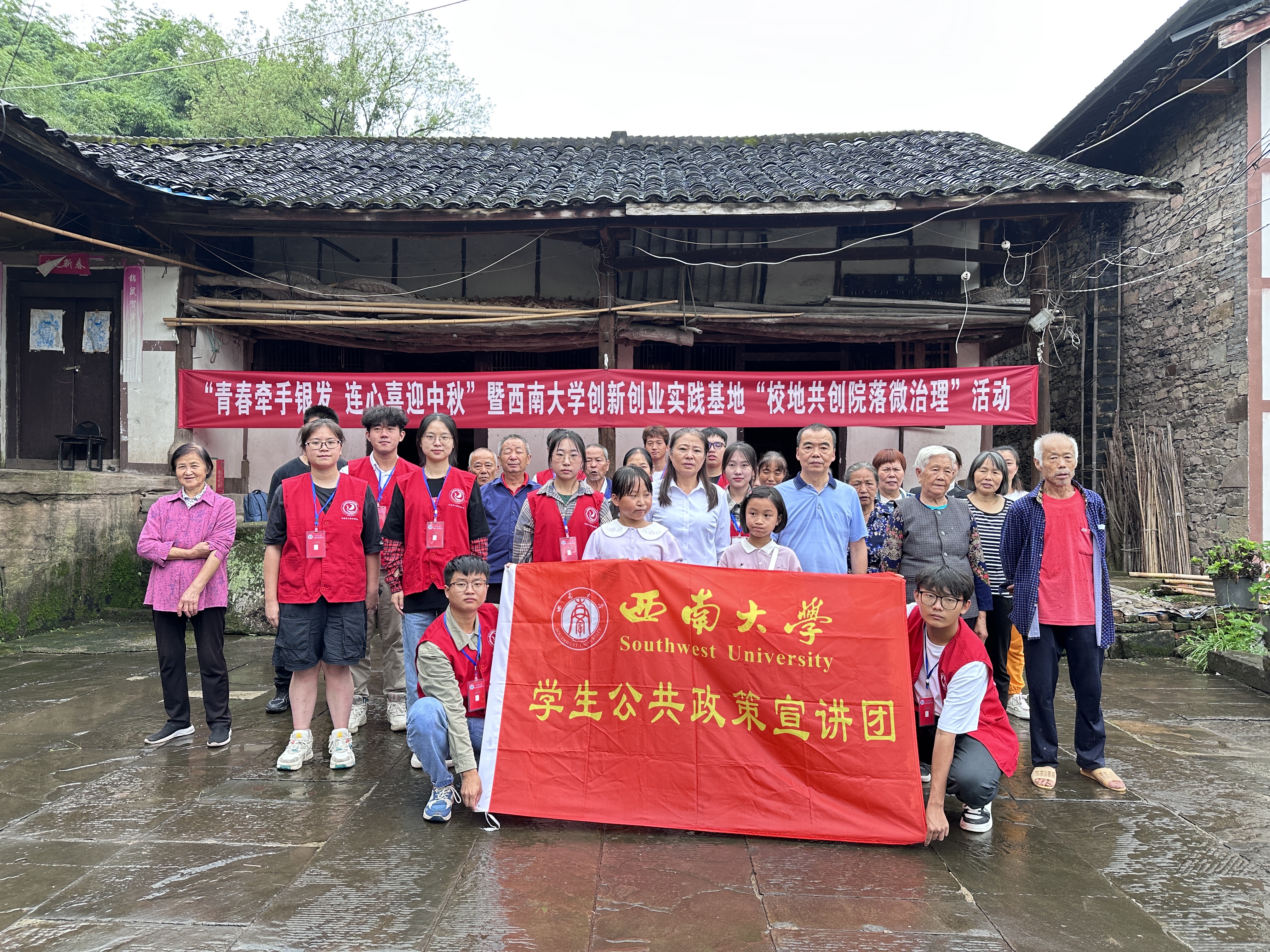 9月24日,學(xué)生公共政策宣講團(tuán)走進(jìn)柳蔭鎮(zhèn)西河村,與該村聯(lián)合開展“青春牽手銀發(fā) 連心喜迎中秋 校地共創(chuàng)院落微治理”活動(dòng),以鄉(xiāng)村治理“雙向奔赴”推進(jìn)鄉(xiāng)村振興。