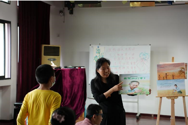 18日上午,細雨綿綿,北碚區特殊教育學校副校長陳群、德育處主任賀仲靈與特殊兒童及其家長在志愿者引導下乘坐校園觀光車一路觀賞西大校園。看到校園中郁郁蔥蔥的綠樹、五彩斑斕的鮮花,家長和孩子們都感嘆西大校園就像美麗的大花園。來到田家炳教育書院的實驗室,賀主任用圖文結合的繪本,滿含深情地為孩子們講述了西南大學杰出校友、我國“雜交水稻之父”袁隆平院士的生平故事,讓孩子們了解袁隆平爺爺克服困難,科學育種,最終解決世界糧食問題的科學故事。聽完故事后,孩子們拿著畫筆繪出自己心目中的袁爺爺。