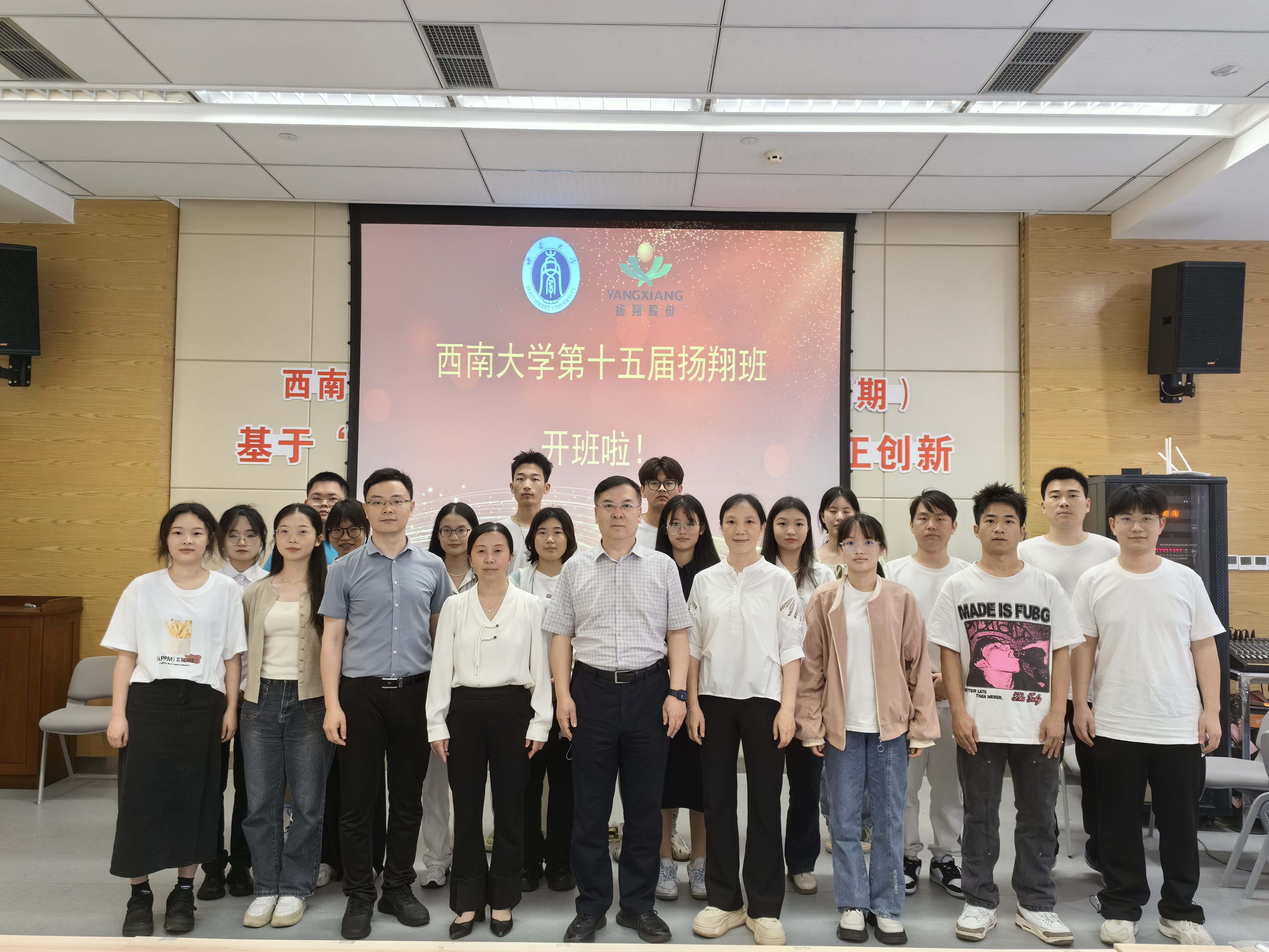 廣西揚翔股份有限公司人力資源副總監李耀華代表企業講話,他對西南大學15年的支持表示感謝,并對西南大學學子投身農牧行業的精神表示肯定和贊許,并鼓勵揚翔班成員要為把中國的養豬業的互聯網化、智能化、數字化的目標而努力奮斗。本次活動,既激勵了新一屆揚翔班成員繼續努力,奮進向前,同時也展現了揚翔班積極奮進、銳意進取的班級文化。