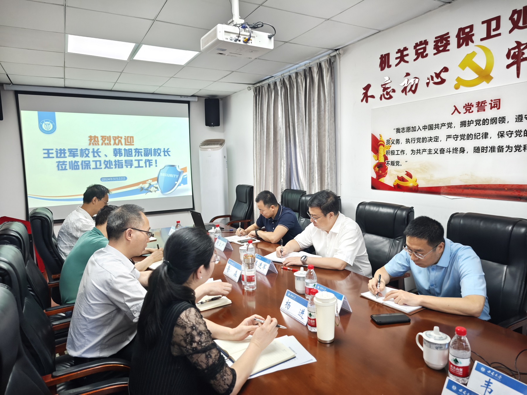 王進軍在聽取工作匯報后,充分肯定了近年來保衛處在維護校園安全穩定等各項工作中作出的貢獻和取得的成績。他指出,學校保衛處承擔著維護校園安全穩定、保障學校正常教學科研和師生學習生活秩序的重要職責,是學校高質量發展的重要保障,希望保衛處時刻踐行“平安護校、服務育人”理念,以高度的責任心和使命感,全力做好安全穩定工作。他指出,要進一步提高政治站位,主動擔當,履職盡責,充分認識安全工作的嚴峻性和復雜性,統籌安全與發展,實現安全與發展良性互動。要聚焦突出問題,強化工作效能,以釘釘子精神抓落實,做細做實各項工作。要加強保密學習教育,進一步強化干部職工教育培訓,提升保密工作意識,增強政治敏銳性。要進一步完善聯動機制,不斷凝聚校園安全工作合力,形成齊抓共管、多方支持的工作局面,為學校“雙一流”高質量發展保駕護航。