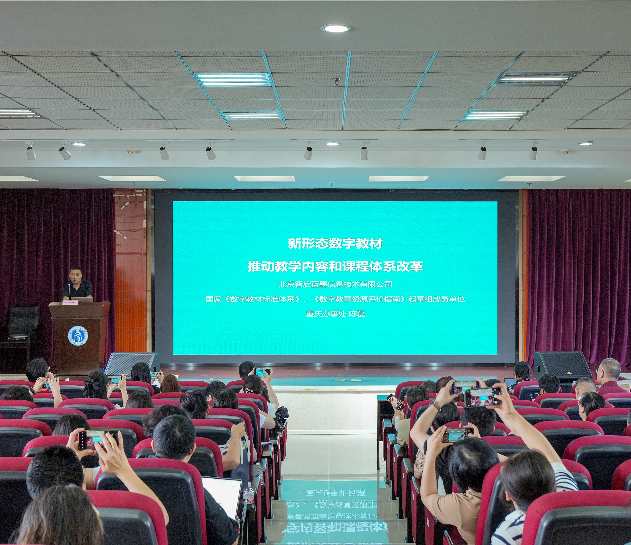 藍(lán)墨云教材重慶辦事處主任陳磊作了題為“推動(dòng)教學(xué)內(nèi)容和課程體系改革 數(shù)字教材智能一體化服務(wù)體系”的專題報(bào)告,介紹了利用在線編輯器自主創(chuàng)作數(shù)字教材的方法,展示了新形態(tài)數(shù)字教材建設(shè)和應(yīng)用的優(yōu)秀案例,并為現(xiàn)場(chǎng)教師答疑解惑。