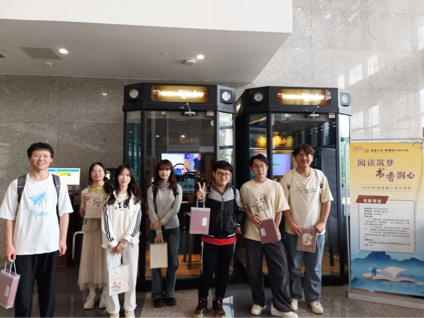 在書香尋寶活動中,精心準備的“寶藏”被巧妙地隱藏在書籍之中,尋寶者在服務臺領取“寶藏線索”小紙條后根據線索的引導,穿梭在書架間,仔細搜尋著每一個書架,翻閱著每一本書籍,尋找隱藏在其中的書簽。而在尋寶之旅中,參與的師生不僅發現了許多平時未曾注意到的書籍和角落,更在尋找線索的過程中感受到了圖書館獨特的文化氛圍。