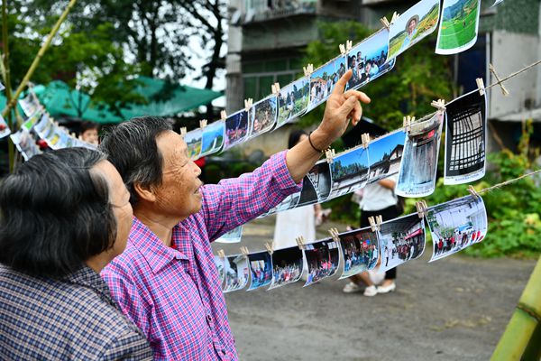 “四民”共創空間的場地上,一幅幅由魚池村“四民”創作,以“清廉村居”為主題的攝影作品如電影膠片一般緩緩展開,每一幀都是組織振興的生動注腳。從鳥瞰“廉心田”的壯觀場景,到勤勞農民手捧稻谷的幸福笑容;從孩子們在“紅心園”體驗收獲的快樂瞬間,到村干部與村民共同勞作的溫馨畫面,這些作品生動記錄了清廉村居創建的點滴,在場的村民和游客紛紛駐足觀看。