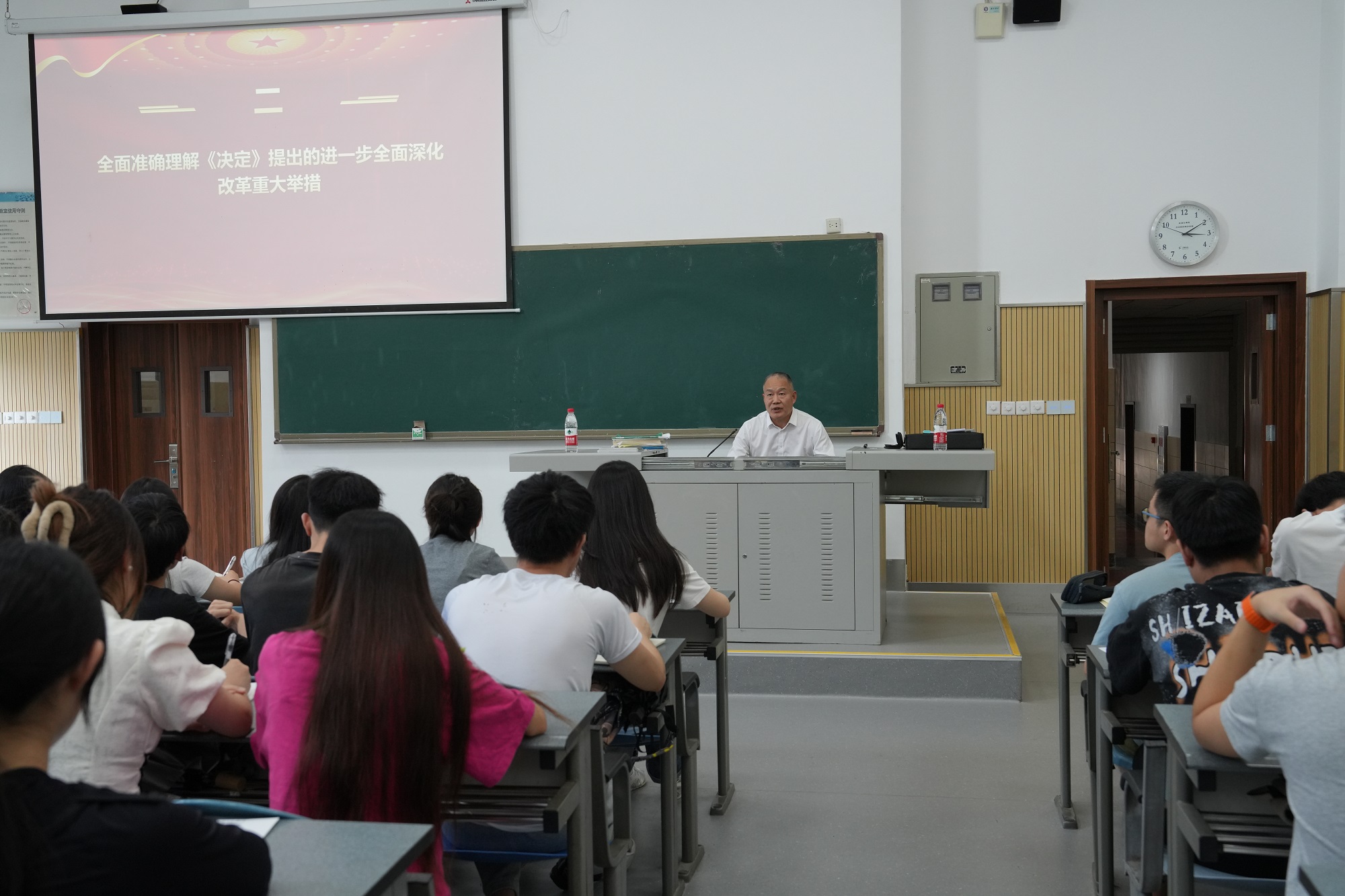 9月27日下午,校長、黨委副書記王進軍教授,副校長葛信勇研究員赴榮昌校區,為不同年級本科生講授形勢與政策課,授課內容為學習貫徹黨的二十屆三中全會精神和全國教育大會精神。