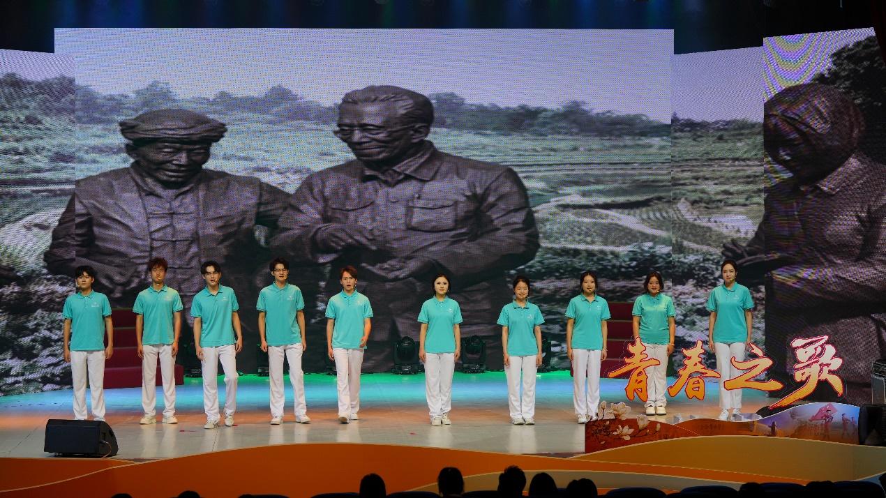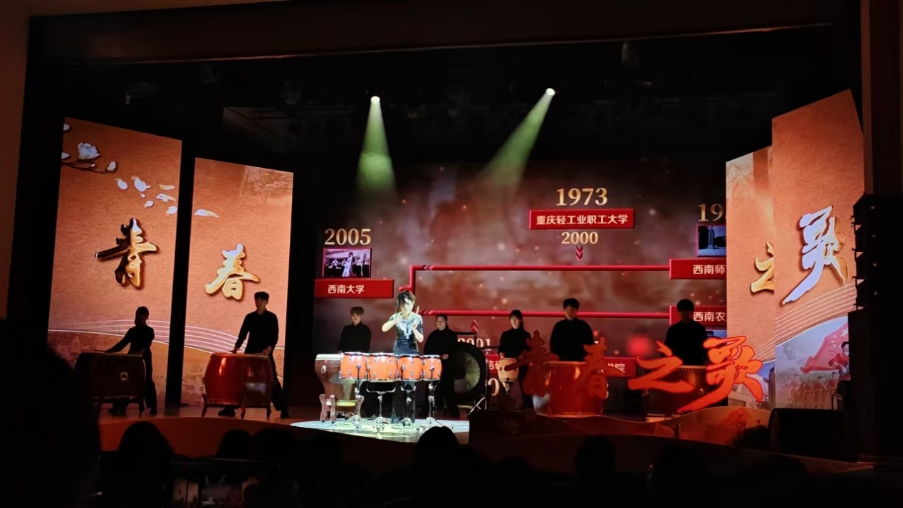 晚會圍繞“青春”主題展開,在序篇《青春鼓點》中,伴隨著現場擊打的精彩鼓樂,學校辦學119年的歷史脈絡在大屏幕徐徐展現,象征一代代西南大學人不懈奮斗的鏗鏘步伐。在后續《青春宣言》《烽火青春》《青春先鋒》三個篇章中,演員們以時空對話、情景劇、檔案解讀、文獻講述、故事演繹、歌舞、朗誦等多種藝術形式,講述自五四運動以來各個革命時期的愛國學生事跡和新時代的青春先鋒典型。
