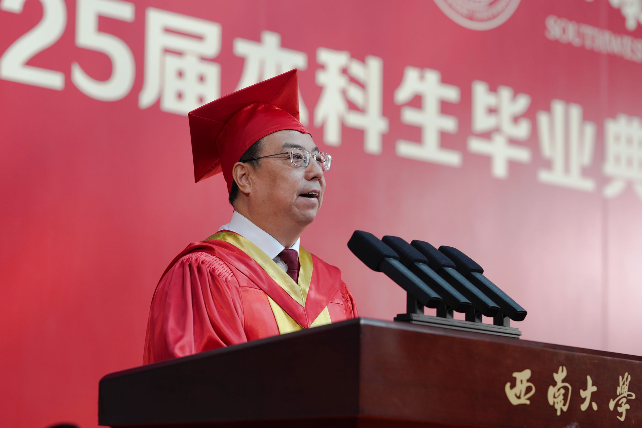 6月26日上午,學(xué)校在北碚校區(qū)中心體育館和榮昌校區(qū)學(xué)生活動(dòng)中心同步舉行2025屆本科生畢業(yè)典禮暨學(xué)位授予儀式,慶祝9434名本科畢業(yè)生圓滿結(jié)束大學(xué)生活,開啟人生新篇章。
