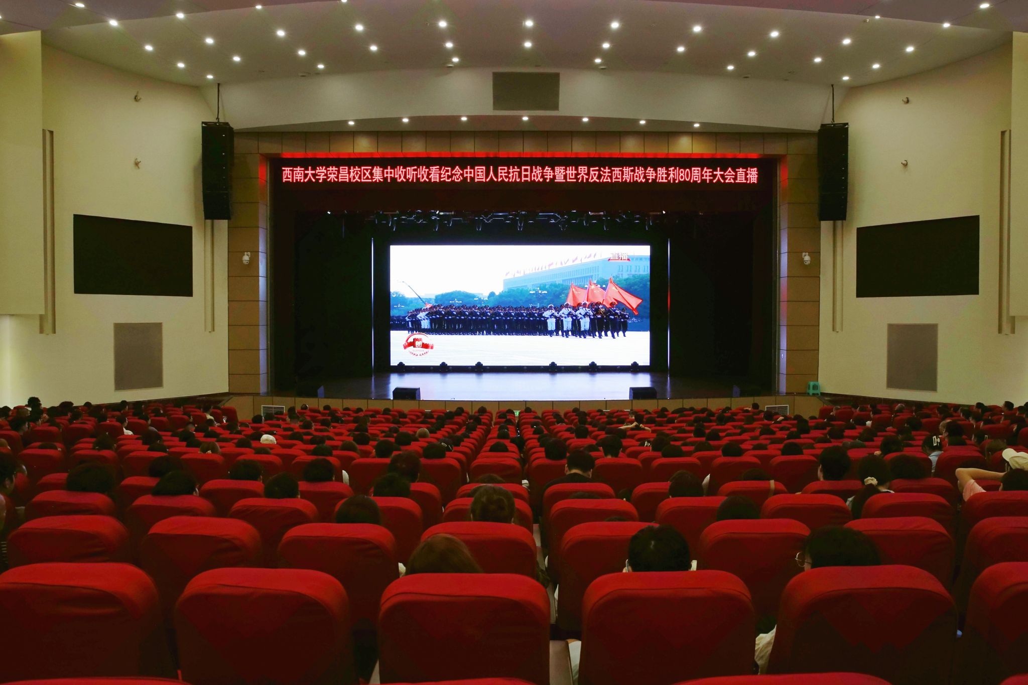學校還在北碚校區圓頂報告廳、榮昌校區大禮堂等場館設立會場,組織師生集中收聽收看大會直播。各二級單位結合實際采取集中與分散相結合的方式組織師生共觀盛會。師生們備受鼓舞,倍感振奮。大家紛紛表示,將深入學習貫徹習近平總書記在大會上的重要講話精神,不斷在偉大抗戰精神中汲取奮進力量,踔厲奮發、勇毅前行,以更加昂揚的斗志、更加堅定的信念、更加頑強的拼搏,為以中國式現代化全面推進強國建設、民族復興偉業貢獻新的更大力量!